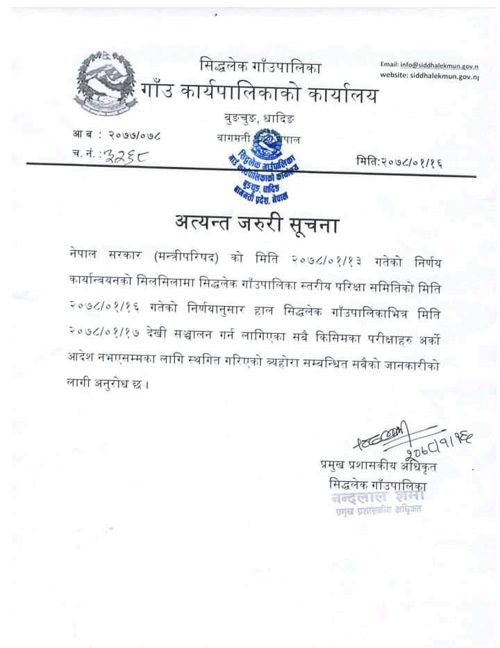 Notification for Garde Improvement Exam for SEE